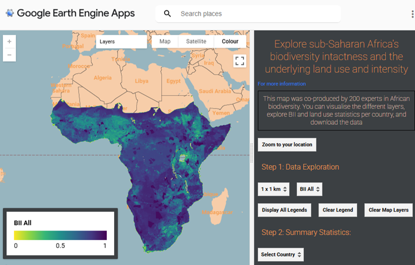 Here you will find an interactive map of sub-Saharan Africa’s remaining biodiversity intactness. The Biodiversity Intactness Index (BII) indicates the average remaining proportion of ‘intact’